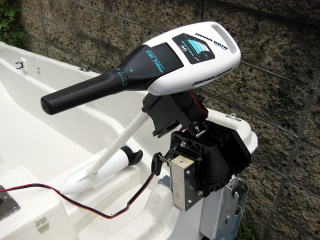 次はエレキをセットした画像と、エンジン走行中のエレキを船内に収納した画像です。