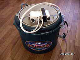 飲ませ用の活きアジを入れる「アジカン」です。 大きなバッカンなども使いましたが、コレが一番使いやすかったです。温度が上がる夏場でも、網がついているのでそのまま沈めれば、簡単に水の入れ替えができます。 余った場合は、沈めておけばポンプなしでも、2日目までアジはほとんど生きています。ポンプは出力の大きいものよりも、小さくても2つの方がいいですね。1つだと電池が切れたのに気づかないと、アジは全滅になってしまいます。生簀のないボートにはオススメですね。 |
