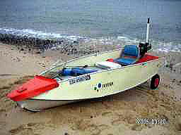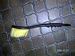 ボートについた砂をさっと落とす、車の洗車用のブラシです。 砂浜出航の時は特に重宝します。 水で流してもいいのだけど、全部の砂を落とすにはかなりの量が必要です。 海水を汲みにいくのは大変だし、貴重な持参のタンクの水はできるだけ使いたくないし・・・ だいたいの砂を落としてから、タンクの水でさっと流せばOKです。 私は防潮堤や、クーラーに立てかけて上の作業を行っています。 |
