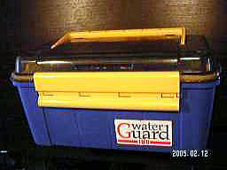 私が使用している防水のタックルボックスです。 ボート上では雨が降ってきたらなす術がないので、非常に助かります。降るたびに袋に入れるのも面倒だし、雨が降っていなくてもシブキでけっこう濡れますので、これは欠かせませんね。 ただし過信は禁物で、横殴りの大雨には耐えません。1晩で3センチぐらい中に水がたまって、仕掛けやカメラが全てパーになった苦い経験があります。 |