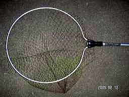 私の使用しているアルミ柄の50センチ径のタモです。 私にはこれで十分と思っていたのですが、友人が同じポイントで「80センチオーバーのヒラメをタモに入らずばらした・・・」と聞いてちょっと不安になっています。 でも60センチ径といえばシーバスに使用しているのと同じでかなり大きくて目立つ・・・20センチぐらいのガシラがメインの釣りでは・・・。フカセをすると鯛やヒラマサが来るのでコレぐらいは必要ですが、飲ませではめったにはいらないと思います。万一の時はハンドギャフでいきます。 |