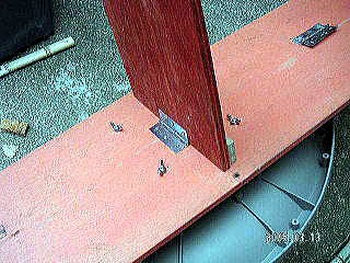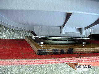取りつけ部の拡大画像です。座板に念のため1センチ厚の板をボンドとネジで固定して