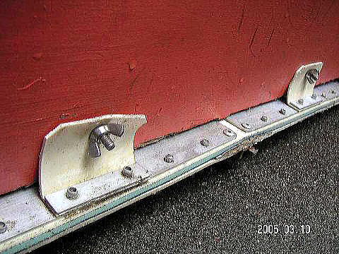 最初はトランサムボードにネジ穴が埋め込まれていて、外側からステンレスの喋ネジを差し込む方式