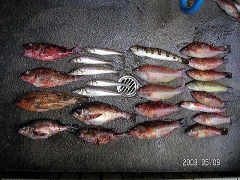 2匹だけ釣れた5センチぐらいのドンコみたいな魚で、アコウとガシラを1匹づつだけ釣って、エサ切れ。