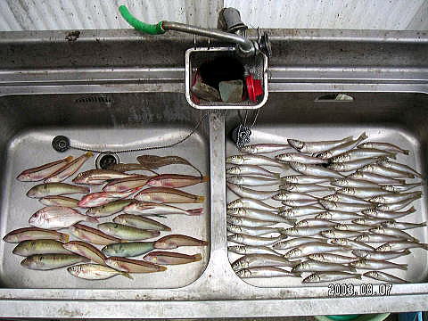 昼はまた潜り、夕マヅメにキスを追加して合計55匹。