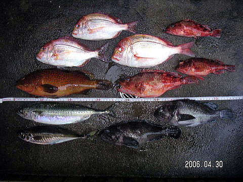 アコウ : 35cm ソイ : 30cmまで2匹 サバ : 38cm
