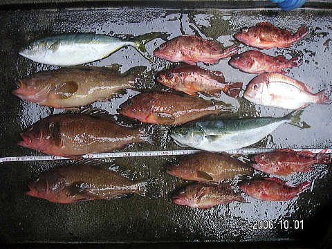 使用ジグ : 80、100グラム。 他、活きアジではガシラ2のみ