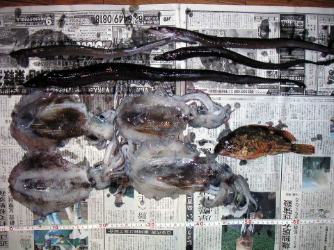 アオリイカ : 18pまで4ハイ アナゴ : 58pまで4匹