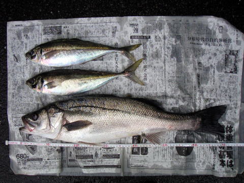 シーバス : 70p級まで7本 アジ42pまで2本 他 ツバス、エソ