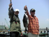 右の画像は、同行のOさんと記念撮影。 この日は二人仲良く最大は47pでした。