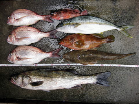 シーバスのほかに、35pクラスのチャリコが2匹、子マサが1でした。