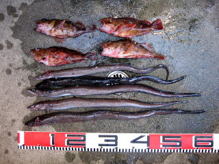 アナゴ : 60pクラスまで5本 ガシラ20pクラス4匹
