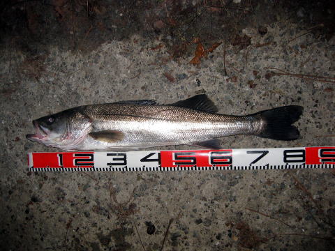 1投目でHITしたのはとっても貧弱な70センチクラスのシーバスでした。