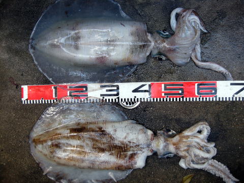 アオリイカの場合、釣ってすぐの水を含んだ状態と死んだ状態では重さがだいぶ変わりますが、どちらが正しいのかな〜