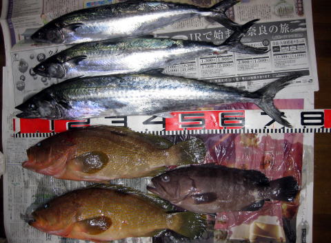 アコウ : 50cm×2本 サワラ : 75cmまで3本 マハタ : 40cm