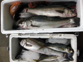 今の時期、無難なのはシーバスかな?旬で、食べてもウマイし。