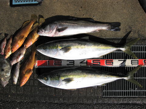 鰤 : 5,7s、5,6s シーバス : 68cm アコウ : 38cmまで約5匹