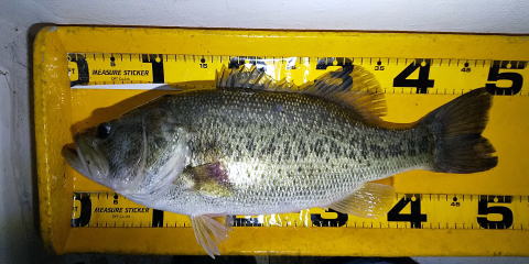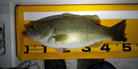 水深4〜5メーターに落ちるブレイクに残っているウィードに狙いを絞ると、ようやくナイスフィッシュGET〜^^