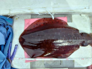 胴長41cm、2110gでしたが、釣ってすぐだと、もう少しあったんでしょうね。