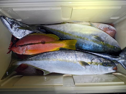 子メジロ2本 ヨコスジフエダイ : 38p メジマグロ : 4本